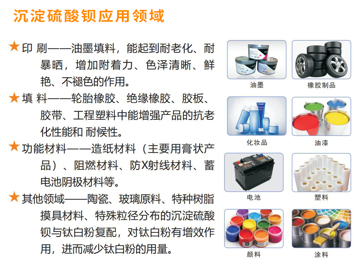 專用改性BaSO4多以氯化鋇等可溶性鋇鹽為原料,表面經(jīng)過表面活性劑包覆處理后的產(chǎn)品。專用改性BaSO4產(chǎn)品的特點主要是高白度、良好分散性和粒徑小且均勻,有利于專用化改性。專用改性BaSO4表面包覆一層有機(jī)修飾層,使其具有了疏水親油表面特性,能夠與有機(jī)物很好的相容。降低顆粒的表面能,減少顆粒在生產(chǎn)和干燥過程中的二次團(tuán)聚,更適合生產(chǎn)超微細(xì)產(chǎn)品。改性硫酸鋇具有普通沉淀硫酸鋇的一般性質(zhì)。此外,可作為特殊功能型填料,適用于粉末涂料、乳膠漆、油墨、塑料等制品中,有較強(qiáng)的親和性和抗射線性能。用作有色顏料填充劑時,能使顏料色澤鮮明、光亮。